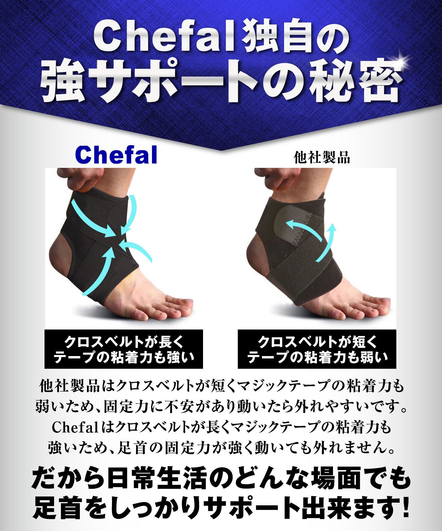 ✅【通気性も◎固定力も強く外れにくい薄型バンド】:ベルトが短く前で止まる他社製品と比べてChefalは足首全体を保護出来る位ベルトが長く、しっかり固定出来るので動いていて外れる事もなく足首サポートが快適で、足首固定保護の大事な点も兼ね備えています。。足首さぽーたーは子ども用サイズのSサイズからLサイズまで揃えておりキッズジュニアから大人まで、 アンクルサポーターは幅広い年齢の方にご使用頂いております。こども用さぽーたーはランニングやサッカー等々幅広いスポーツにも対応しております。スポーツ用としても捻挫固定するのにお勧めな足首サポーターです。